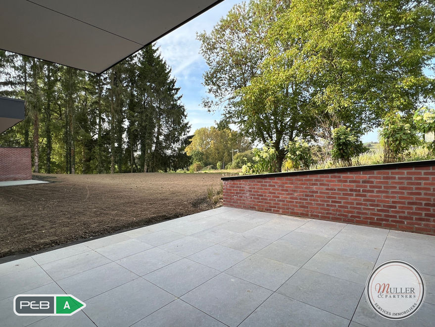 Châssis en alu DV, chauffage sol au gaz dans les pièces de vie avec chaudière individuelle, VMC. Local vélo. Abords extérieurs totalement aménagés. Provision pour charges communes : 140€/mois. PEB RWPEB 094999 classe A (k<35, Ew<65, Es<115). Libre le 01/02/2026.