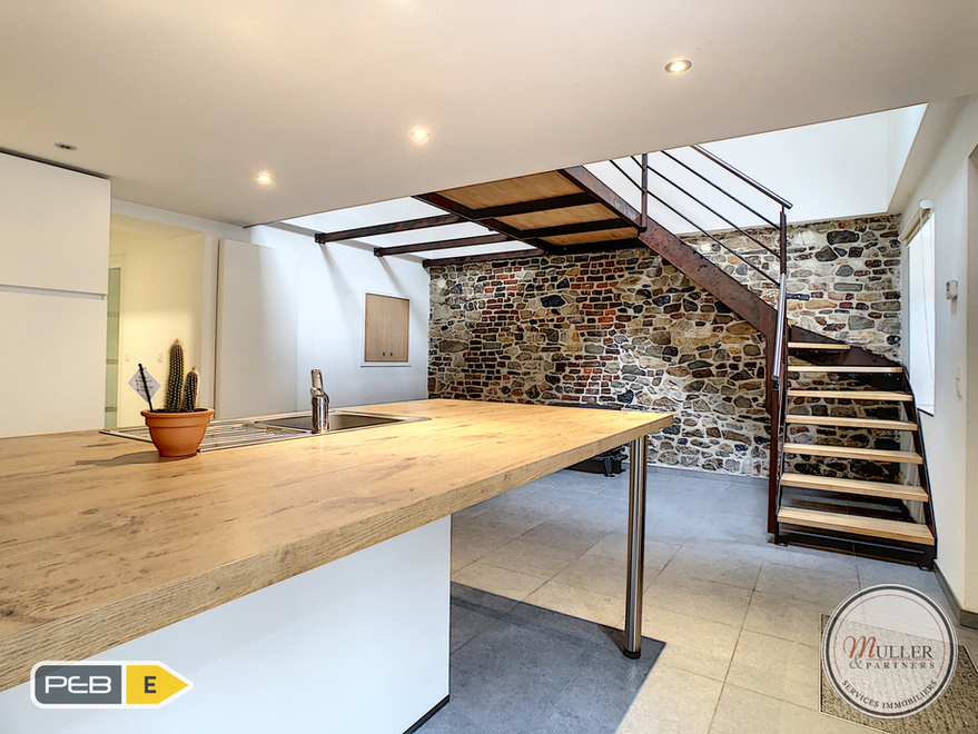 Charmante maisonnette 3 façades rénovée avec goût, située dans une ferme à Mortroux. Idéal pour personne seule ou couple sans enfants (1 chambre). Superficie habitable totale de +-50 m2. Emplacement de parking, pas de cour, pas de jardin.