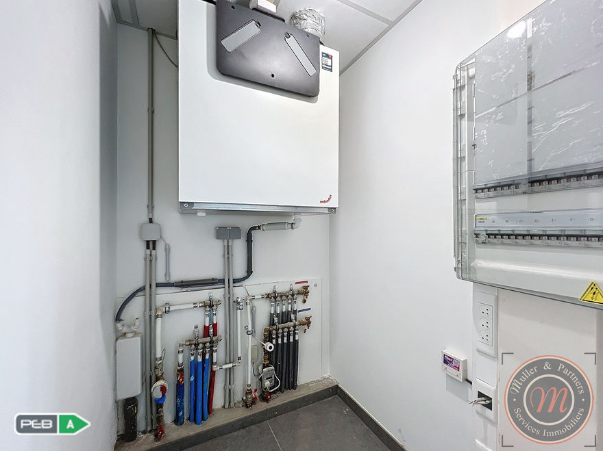 Divers : chauffage central au gaz de ville, châssis en alu double vitrage - PEB RWPEB-103142 - 20241011502484 – classe A, consommation totale d’énergie primaire du bâtiment 5.013 kWh/an, consommation spécifique d’énergie primaire 63 kWh/m2.an