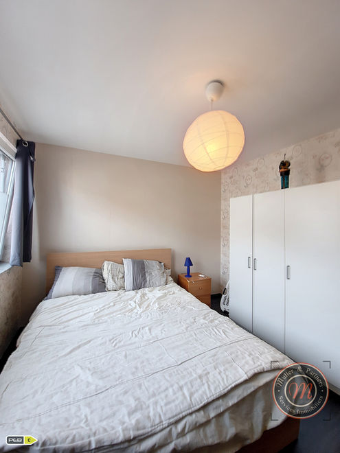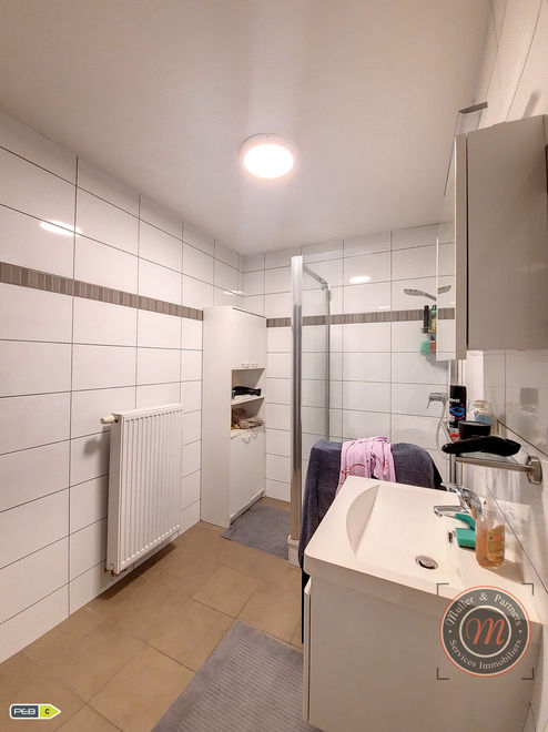 Emplacement de parking non-couvert, cave privative, chauffage central au gaz de ville, châssis en PVC double vitrage, ascenseur. PEB : 20220405025711 : classe C, consommation spécifique d’énergie primaire de 174 kWh/m2.an, consommation d’énergie totale : 14.002 kWh/an. Loyer de 720€/mois et provision de charges communes de 80€/mois (ne comprenant pas les consommations privatives d’eau, gaz et électricité). Disponible à partir du 1er juin 2022.