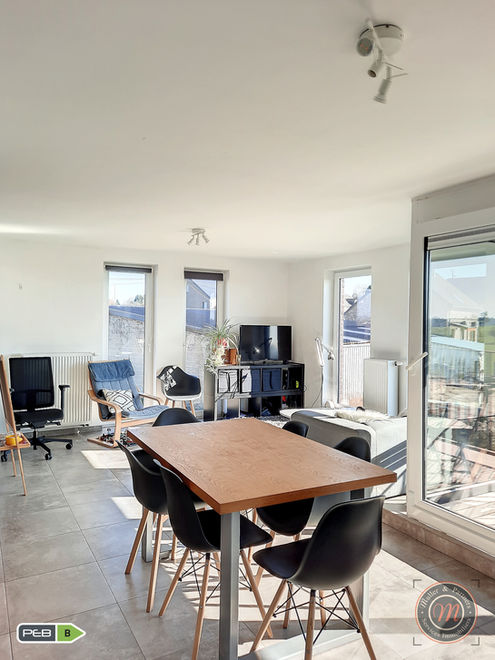 Terrasse exposée au soleil, chauffage central au gaz (chaudière à condensation), châssis PVC double vitrage, pas d’ascenseur, emplacement de parking devant le bâtiment, disponible le 1er mai 2022 (à confirmer), loyer de 725€/mois et provision de charges communes de 15€/mois (ne comprenant pas le gaz, l’électricité et l’eau), déclaration PEB initiale PEB RWPEB-021505 : K < 41, Ew < 69, Es < 128.