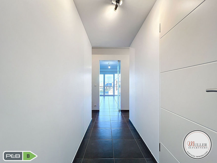 Divers : cave de 7 m² en sous-sol, emplacement de parking sous carport, chauffage par le sol via pompe à chaleur compris dans les charges communes (uniquement le chauffage), boiler, ascenseur, châssis en PVC double vitrage. Peb : classe B, consommation spécifique d’énergie primaire : 135 kWh/m².an, consommation totale d’énergie primaire du bâtiment : 14.255 kWh/an. Libre de suite. (Informations données à titre indicatif sous réserve d’erreur(s)).