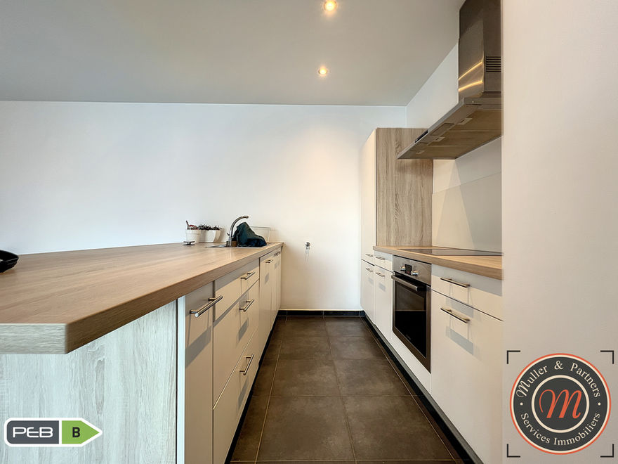 chauffage sol au gaz de ville, châssis en alu double vitrage, loyer 830€/mois, provision mensuelle de charges communes 100€/mois, PEB : 20140420001871, classe B, consommation spécifique d’énergie primaire de 96 kWh/m2.an et consommation théorique totale d’énergie primaire de 9.547 kWh/an. Informations données à titre indicatif et sous réserve d'erreurs