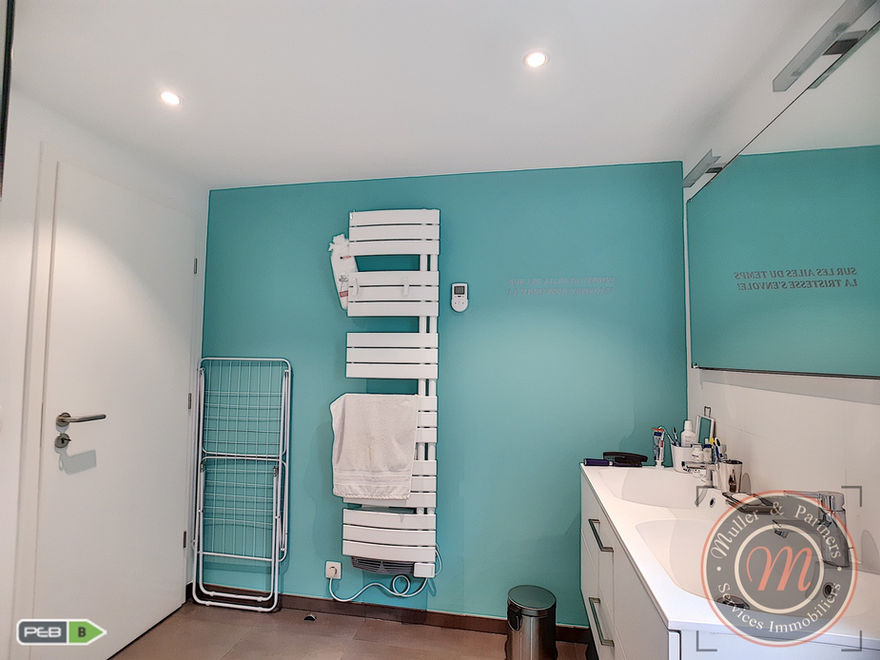 Proximité directe du Ravel, ascenseur, chauffage par le sol au mazout, châssis en PVC double vitrage, VMC double flux, boiler de 200 litres (pour 4 pers.), compteur électrique bi horaire, électricité conforme, stores et moustiquaires à toutes les fenêtres, PEB :RWPEB-034109, consommation spécifique d’énergie primaire 123 kWh/m2.an, consommation théorique totale d’énergie primaire 11.150 kWh/an – appartement actuellement loué par un locataire sérieux et soigneux – idéal pour investissement !