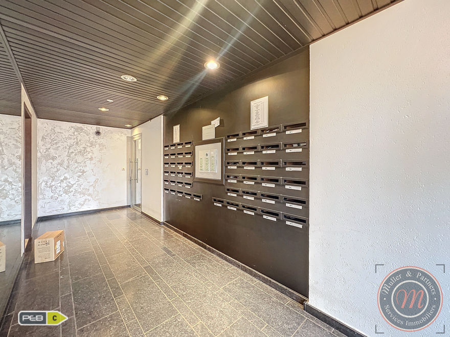 Superficie totale : +/- 110 m² (d'après PEB); Châssis PVC très récents équipés de double vitrage ; électricité et gaz conforme ; chaudière commune gaz à condensation, calorimètres électroniques dans l’appartement. Provisions de charges communes mensuelles : 302€/mois (provisions de chauffage comprises). Informations énergétiques : PEB C, No. : 20190704023073, E spec : 250 kWh/an, E totale : 27365 kWh/ m².an.
